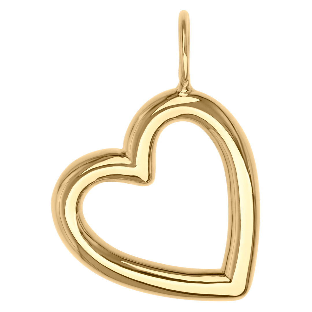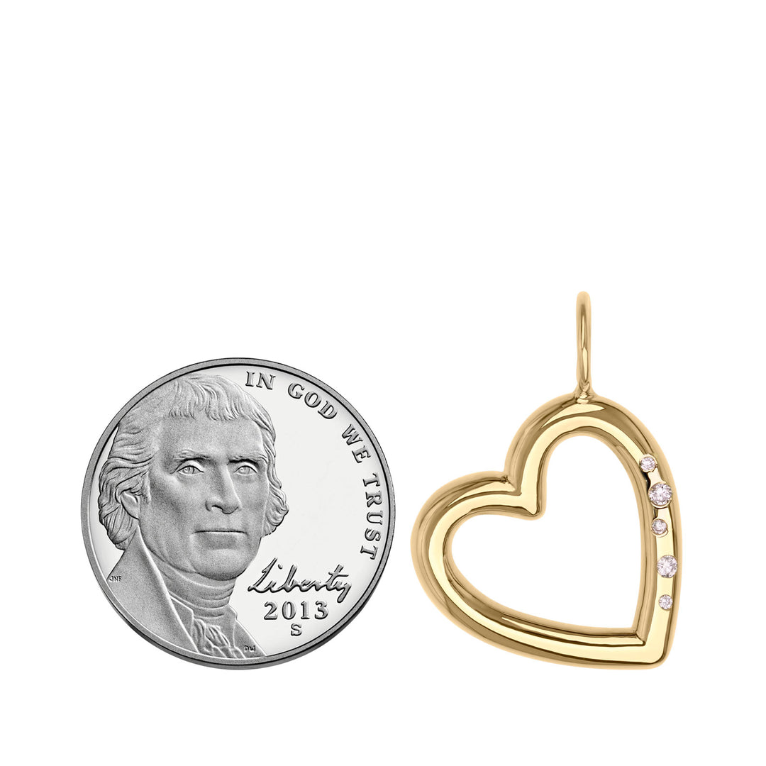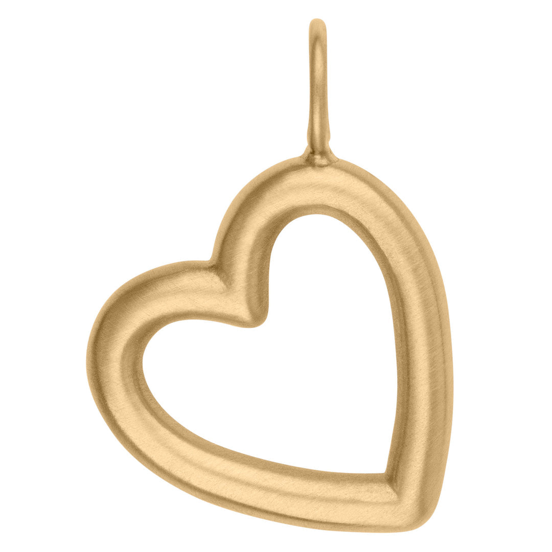 Stunning and unique, this open heart charm in 14k yellow gold is the perfect addition to any jewelry collection. It is available in a brushed finish; a high polished finish; or a high polished finish with a lovely diamond scatter. A perfect as a stand alone charm or as an addition to an already established necklace.