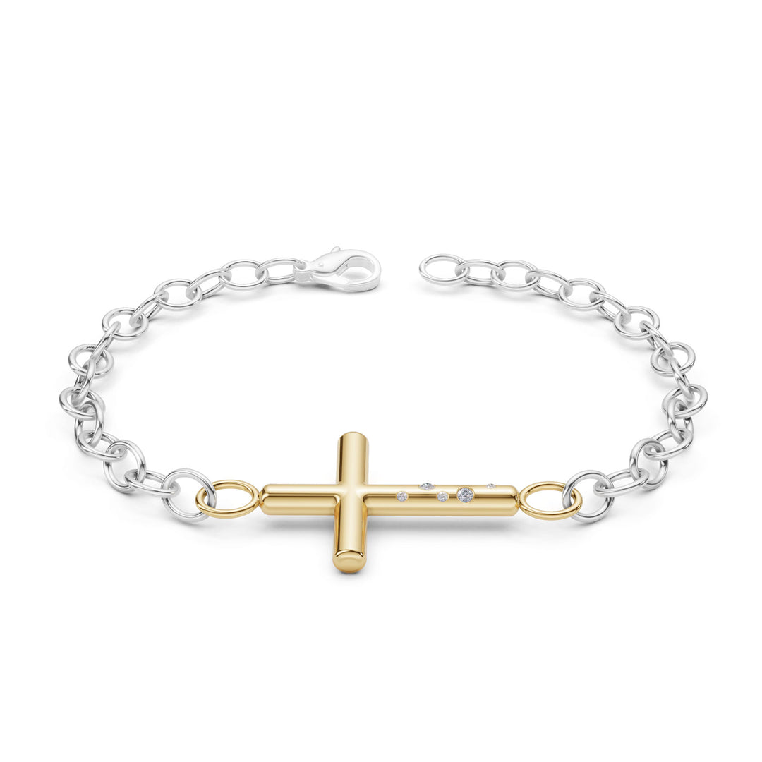 4.8mm Silver & Gold Diamond Cross Bracelet