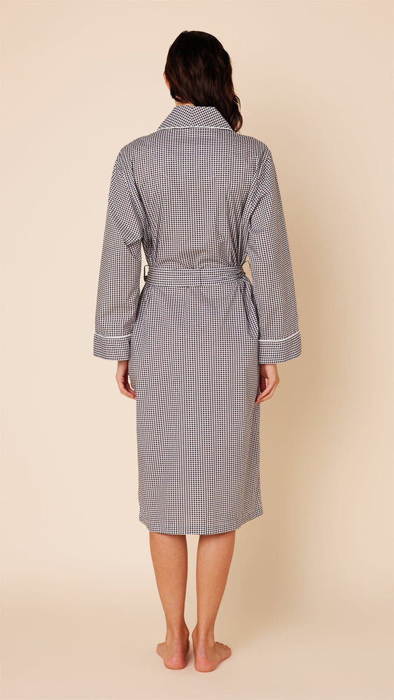 Classic Gingham Luxe Pima Cotton Shawl Robe - Navy
