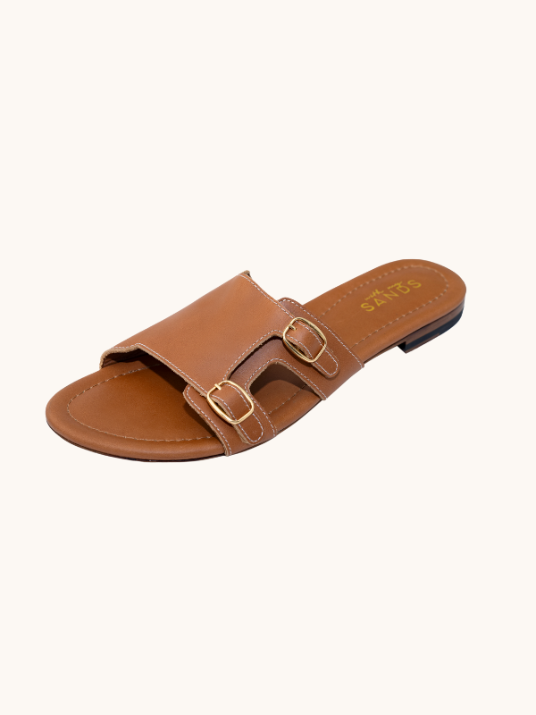 - Two adjustable golden brass buckles.