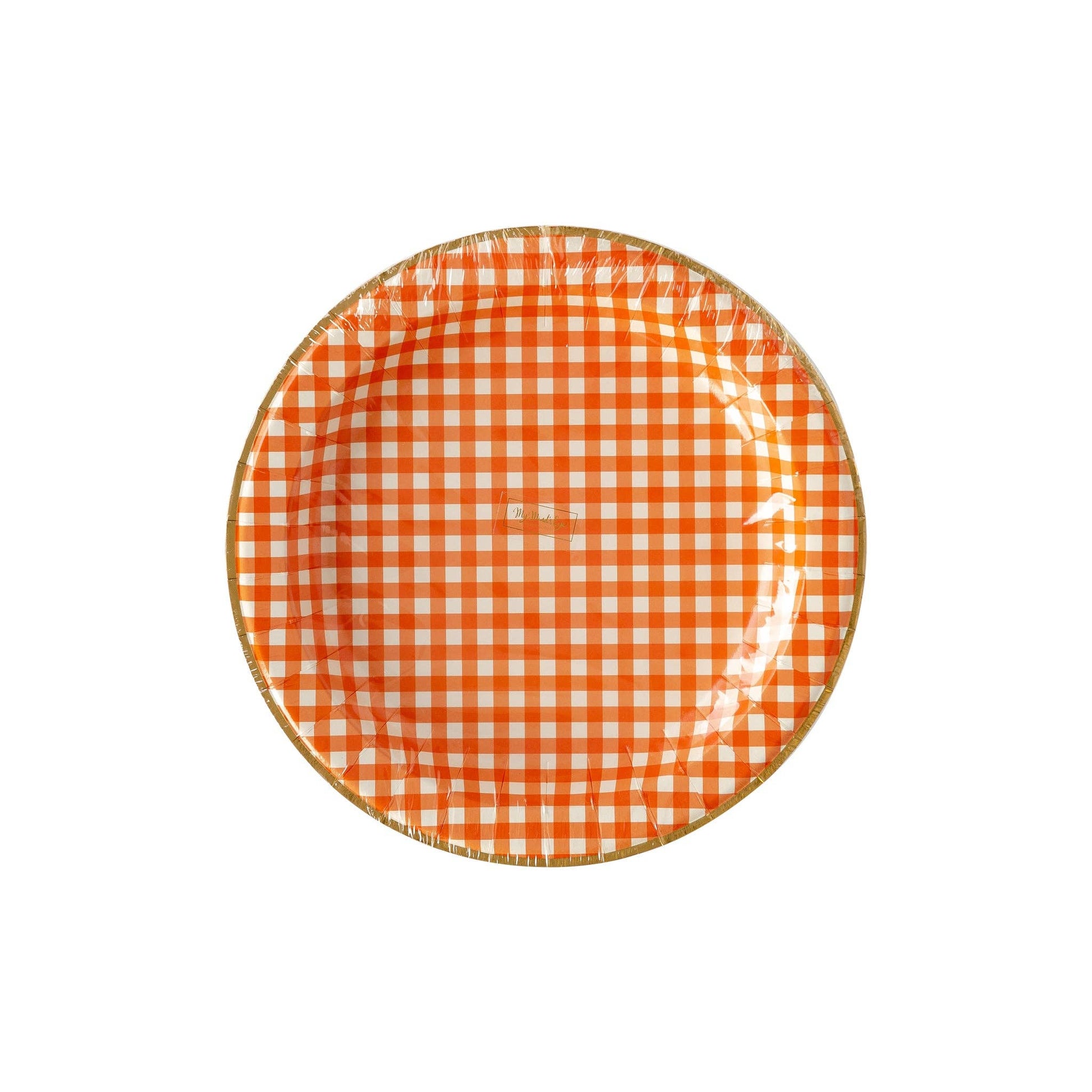Set a rustic table this Thanksgiving with these gingham check plates. These party plates are 11 inches making them the perfect addition to a Thanksgiving dinner. With a gold foil rim and an orange gingham pattern reminiscent of pumpkin spice, these dinner plates are ideal for a cozy harvest feast.