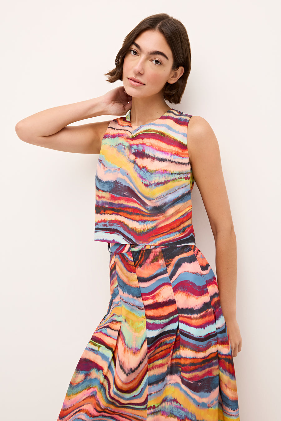 A unique A-line shape combined with our colorful, geological-inspired Ammolite pattern makes our new Jamie top one of the design team’s favorite new tops for fall.