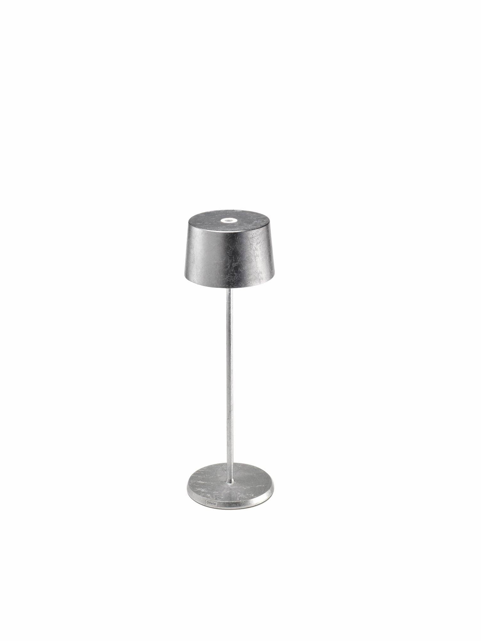 Instructions: To recharge your Olivia table lamp, plug the provided charging base into an outlet and place the lamp on the base. The translucent top will glow red while charging and turn green once the charging cycle is complete.
