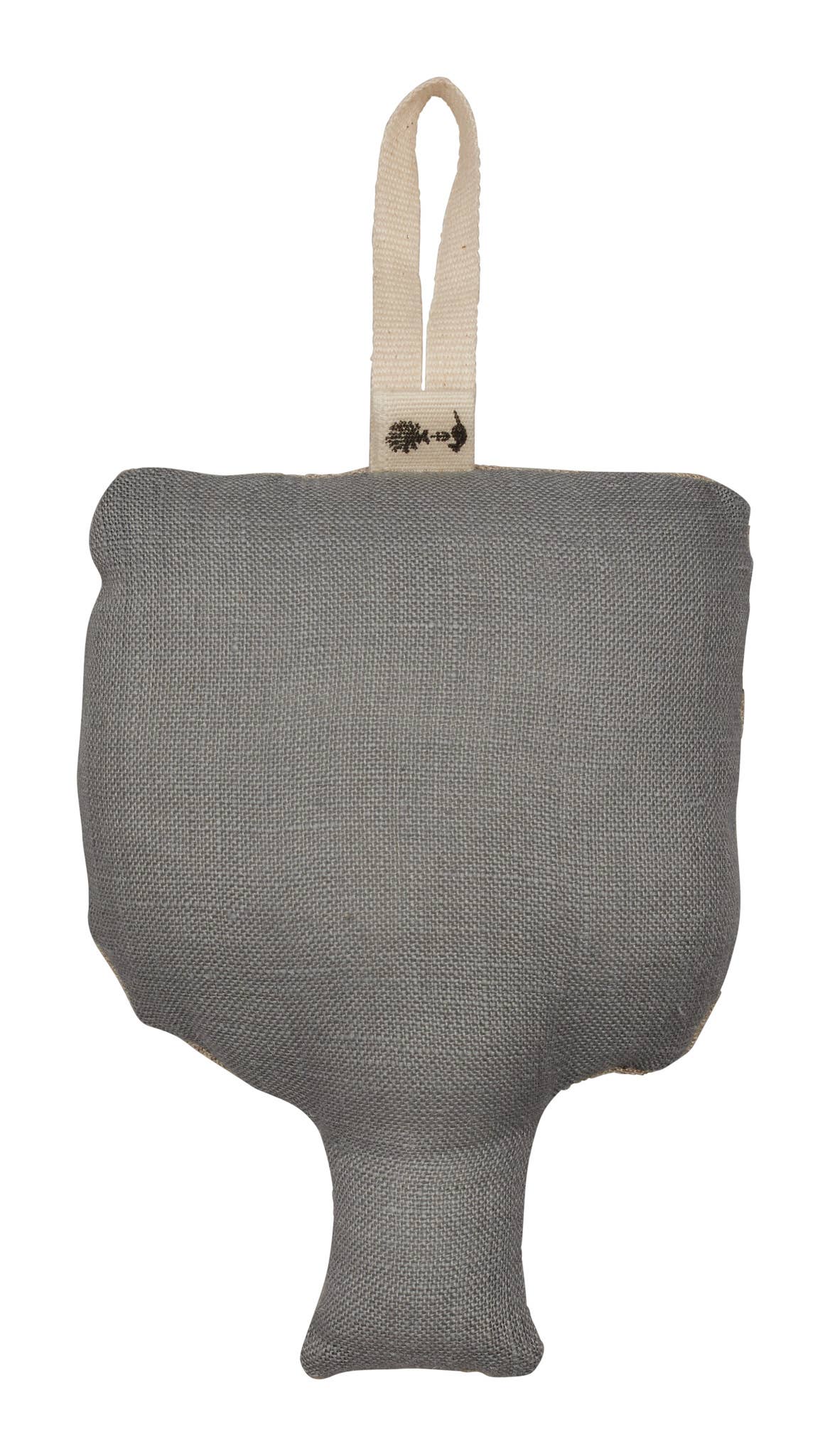 Measures 5" × 4" with a 2" cotton loop for hanging.