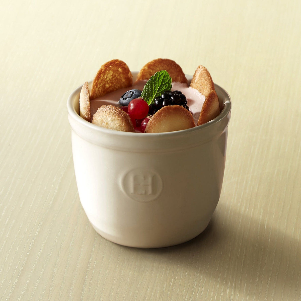 Ideal for many types of recipes for one or two, the Emile Henry ramekin is perfect for coddled eggs, mini cobblers, chicken pot pie, individual gratins, small soufflés, classic flan and Pot de Crème. The ingredients are cooked evenly, without drying out, thanks to our HR ceramic®. Our highly resistant glaze protects your ramekin against scratches and chips, and it can be put in the dishwasher without losing its colour. All Emile Henry products are made in France and offer a ten year guarantee.