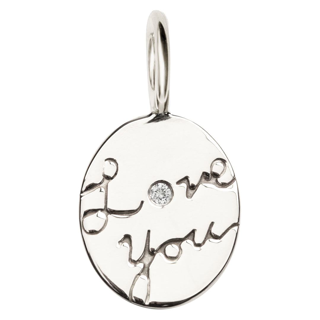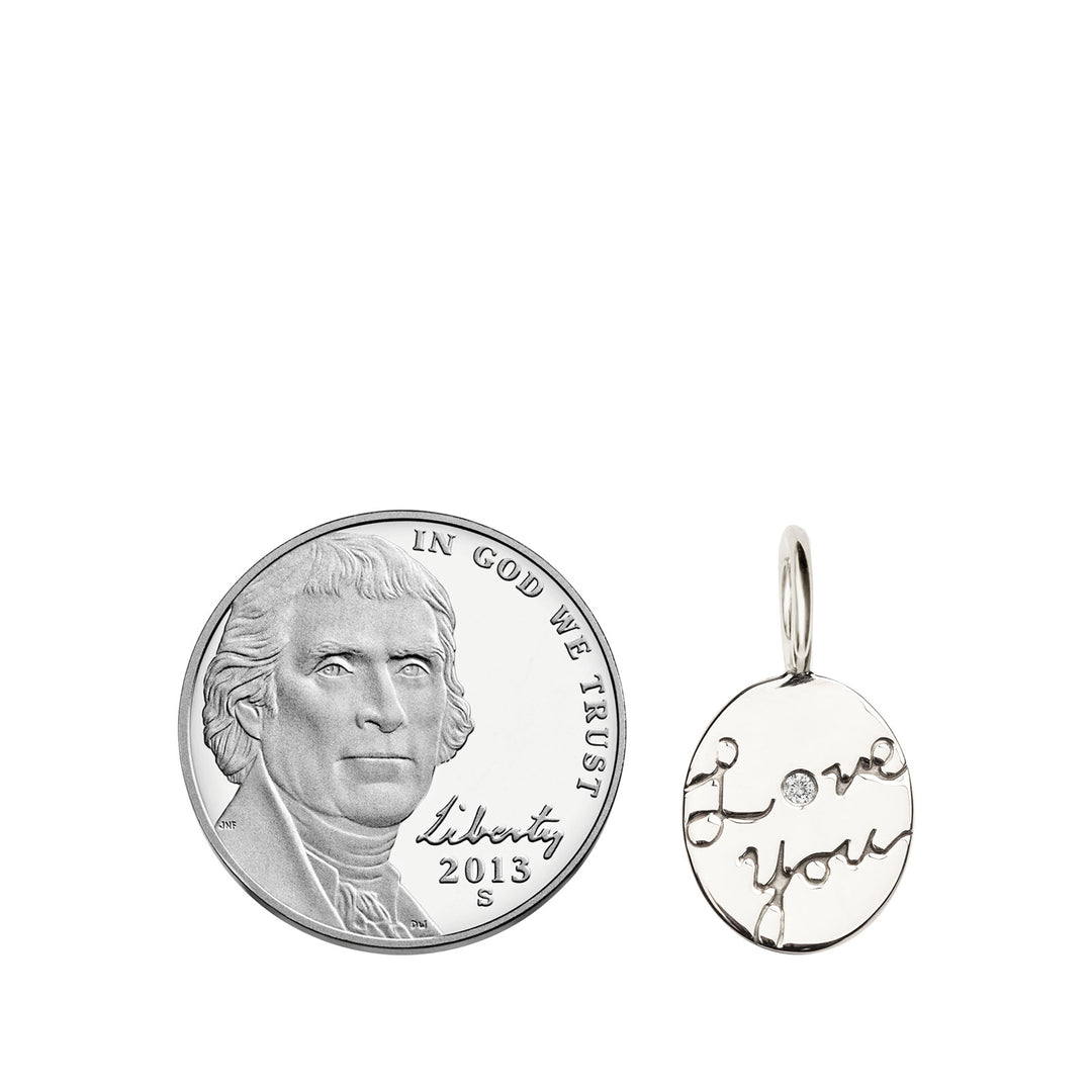 Show off your love with our Silver Love You Oval Charm. Made with sterling silver and a stunning white diamond, this charm is the perfect touch of elegance and affection. The high polished finish adds a touch of shine to any outfit.