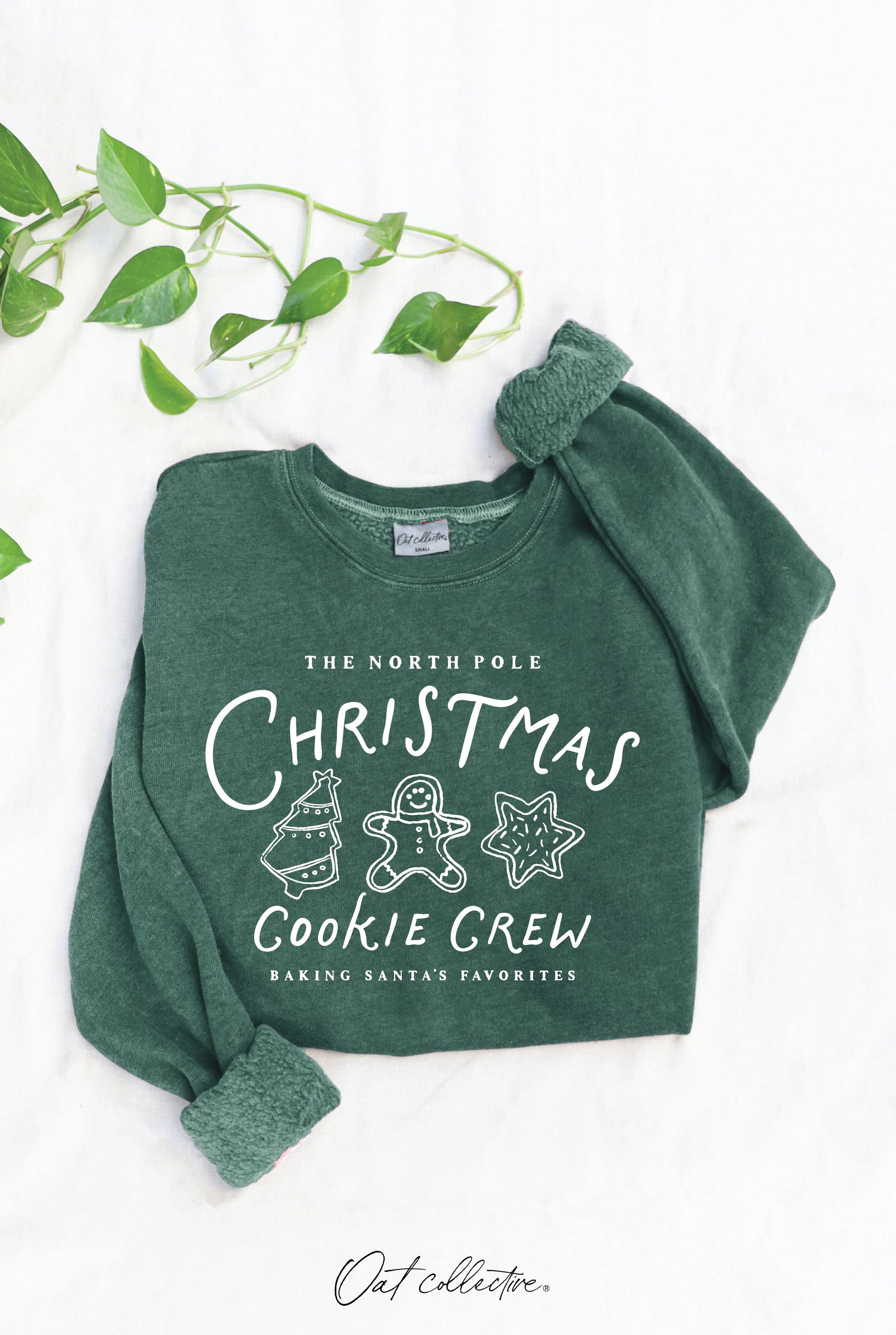The North Pole Christmas Cookie Crew Mineral Graphic Sweatshirt - Dusty Forest