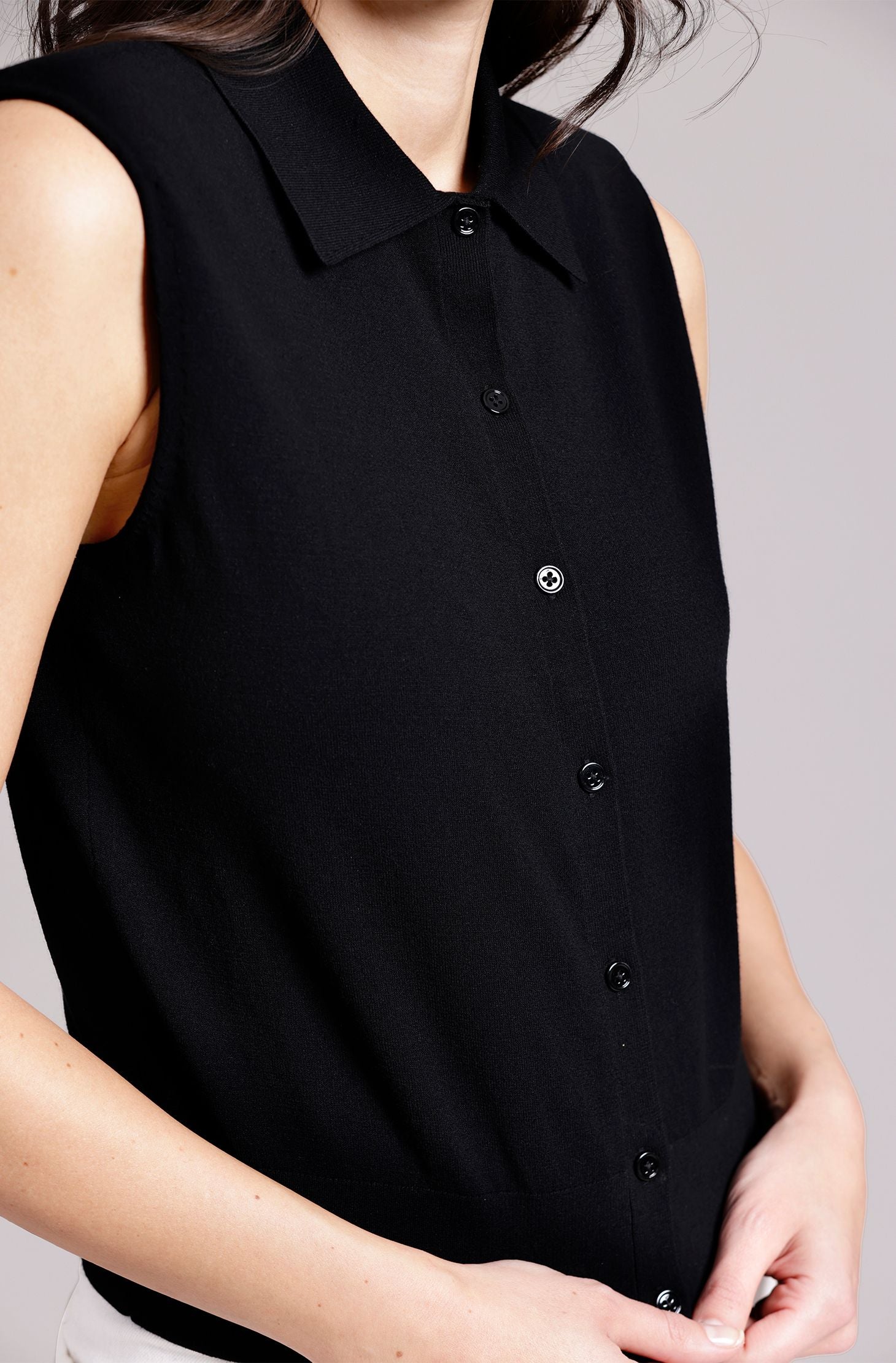 This sleeveless polo is the perfect blend of classic style and modern elegance! It's crafted from high-quality viscose, ensuring a soft, breathable feel that flows beautifully against the skin and keeps you cool during warmer days. Featuring a charming button-front design, this polo adds a touch of sophistication to your casual wardrobe. The tailored fit flatters your silhouette, while the sleeveless style offers versatility for layering or wearing on its own.