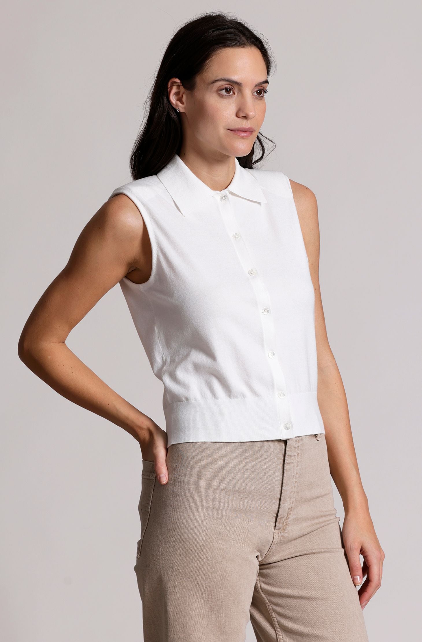 This sleeveless polo is the perfect blend of classic style and modern elegance! It's crafted from high-quality viscose, ensuring a soft, breathable feel that flows beautifully against the skin and keeps you cool during warmer days. Featuring a charming button-front design, this polo adds a touch of sophistication to your casual wardrobe. The tailored fit flatters your silhouette, while the sleeveless style offers versatility for layering or wearing on its own.